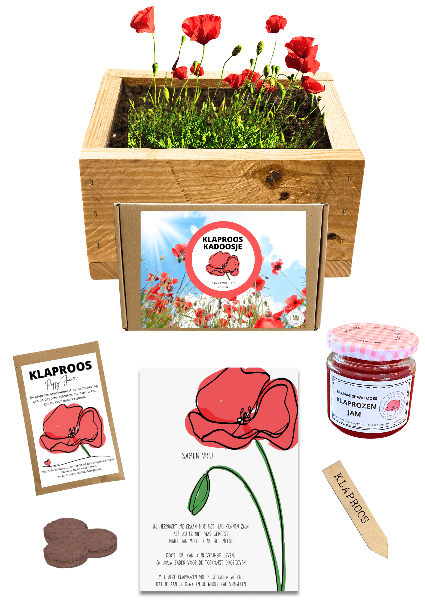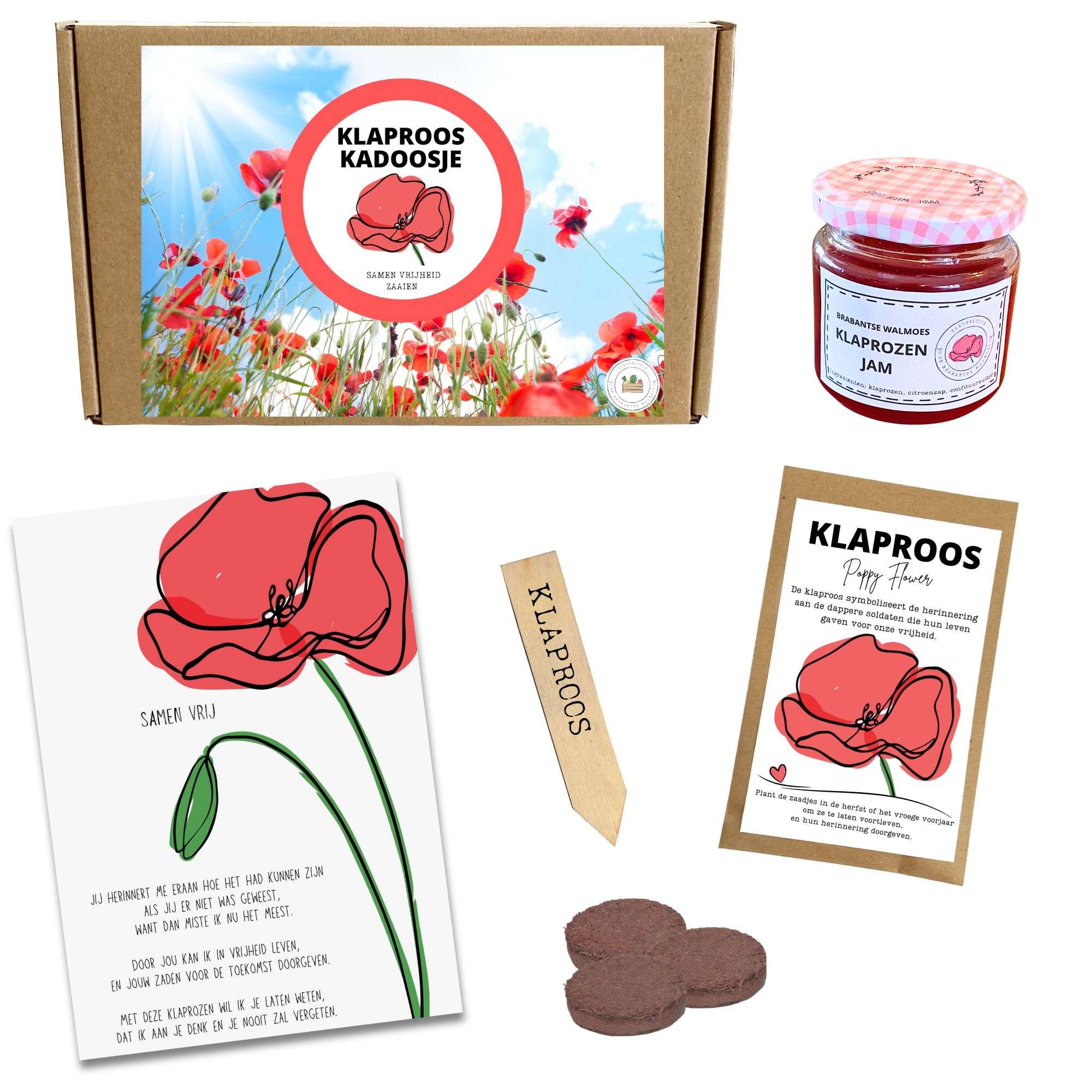 De zadenbox bevat alles wat je nodig hebt om de klaprozen te laten groeien en de herdenking te vieren: